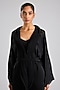 Featuring a black micro-pleated cape in satin chiffon base. It is paired with pant, a belt and a slip. Accentuate it with classic black stilettos, a structured clutch, and understated diamond acessories for a refined ensemble, ideal for formal evenings, cocktail gatherings or upscale parties.