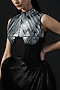 Featuring a black top in tulle base with hand embroidery. It is paired with a matching skirt.
