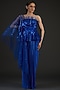 Featuring a blue pre-stitched saree in jersey and tulle base with hand embroidery and metallic polymer winged polymer.