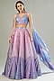 Blue & Purple Ombre Striped Fabric & Chiffon Lehenga Set