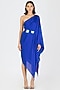 Blue Satin Chiffon One-Shoulder Draped Dress