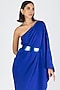 Featuring a blue one-shoulder draped dress in satin chiffon base. It is paired with a polymer belt. Accentuate it with statement jewellery and heels for an evening look.