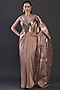 Featuring a blush pink gown in crinkled chiffon and satin lycra base with metallic detailing.