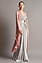 Featuring a blush pink cape in chiffon base. It is paired with a grey blouse having lace detailing and a draped skirt. Accentuate it with statement jewellery and heels for a festive occasion or sangeet ceremony.