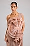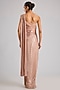 Featuring a blush pink gown saree in mineral jersey base. Accentuate it with sleek metallic heels and a minimal diamond or crystal stud for a striking ensemble, ideal for cocktail evenings, reception nights or glamorous evening celebrations.