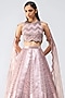 Featuring a blush metallic skirt in tulle and butterfly net base. It is paired with a metallic halter top and two tulle sunray drapes. Accentuate it with statement jewellery and heels for a wedding or sangeet ceremony.