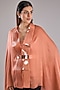 Featuring a coral cape in metallic polymer and crepe chiffon base. It is paired with a slip and belt. Team it up with pants, statement earrings and heels for a contemporary look.