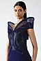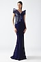 Cosmos Blue Banana Crepe Corded Off-Shoulder Gown