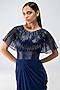 Featuring a cosmos blue gown in butterfly net and satin chiffon base. Accentuate it with zirconia or swarovski jewellery, stilettos and a clutch for evening soirees, gala dinners or cocktail parties.