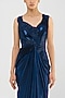 Featuring a cosmos blue structured draped gown in jersey and velvet chiffon base with metallic pleats, beads and cord detail. Accentuate it with zirconia or swarovski jewellery, stilettos and a clutch for evening soirees, date nights or cocktail parties.