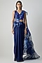 Featuring a cosmos blue top in satin chiffon base. It is paired with a draped skirt and a draped palla. Accentuate it with zircon or diamond jewellery, a clutch and block heels for a destination wedding, sangeet or engagement ceremonies.