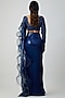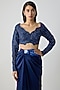 Featuring a cosmos blue top in satin chiffon base. It is paired with a draped skirt and a draped palla. Accentuate it with zircon or diamond jewellery, a clutch and block heels for a destination wedding, sangeet or engagement ceremonies.