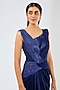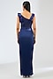 Featuring a cosmos blue gown in satin chiffon base. Accentuate statement earrings and heels for a cocktail party.