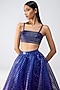 Featuring a cosmos metallic ombre bustier in polyester and butterfly net base. It is paired with an ombre fluted tulle skirt and a drape. Accentuate this designer skirt set with zircon jewellery, stilettos and a structured clutch for a versatile look. Perfect for evening receptions, cocktail parties or gala dinners.