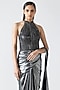 Featuring a crystal colored draped saree in synthetic polyester and nylon base. It is paired with a blouse. Style it with statement earrings, block heels, a necklace, and a clutch for a glamorous cocktail soiree.