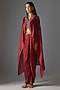 Deep Red Satin Chiffon Cape Set