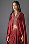 Featuring a deep red cropped cape in satin chiffon base with banarasi detail. It is paired with a draped skirt. Accentuate it with pearl jewellery, strappy sandals and a loose bun for evening receptions, cocktail events or gala dinners.