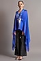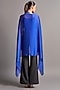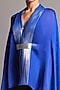 Featuring an electric blue cape in chiffon base with metallic polymer placket. It is paired with a matching slip and a belt.