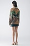 Featuring an emerald cape in banana crepe and butterfly net base with print. It is paired with a stretch crepe short dress and a belt. Accentuate with minimal jewellery and heels for a complete look.