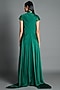 Featuring an emerald draped dress in crinkled chiffon base with handwoven metallic work.