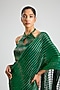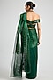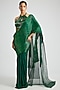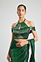 Featuring an emerald draped saree in georgette base with a metallic glitch palla with woven zari and glass bead work. It is paired with a tulle blouse. Accentuate it with statement jewellery and heels for festive occasions or a wedding ceremony.
