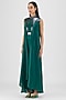 Emerald Green Chiffon & Polyester Metallic Draped Paneled Dress