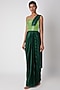 Featuring an emerald green ombre pre-stitched saree in interlock jersey base. It has sequins embroidery.
