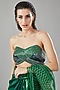 Featuring an emerald green metallic saree in tulle and jersey base. It is paired with a matching moulded corset.