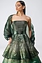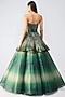 Featuring an emerald peplum top in regina, butterfly net and organza base. It is paired with a flared skirt. Accentuate it with statement earrings and heels for cocktail or wedding ceremonies.