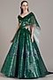 Featuring an emerald green lehenga in striped and tulle base. It is paired with a matching blouse and a winged drape.