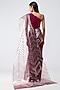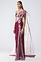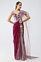 Garnet-Colored Organza Glass Bead Embroidered Draped Gown Saree