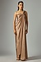 Gold Satin Chiffon Corded Maxi Dress