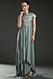 Featuring a grey metallic draped dress in crinkled chiffon base.