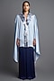 Featuring an ice blue paneled cape in chiffon base with handwoven metallic polymer marbled yoke. This contains only one piece.