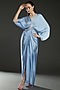Ice Blue Hammared Satin Draped Kaftan Dress