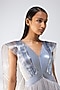 Amit Aggarwal presents an ice blue micro-pleated jumpsuit in butterfly net and metallic jersey base with attached wings. Complete with chandelier earrings, a sleek updo and metallic stilettos for a show-stopping look, perfect for elite cocktail parties, gala dinners, or red-carpet events.