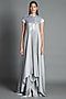 Featuring an ice grey draped dress in crinkled chiffon base with handwoven metallic work.