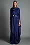 Featuring an ink blue draped dress in crinkled chiffon base with metallic detailing.