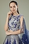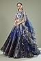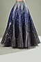 Featuring an ink blue-pewter metallic structured lehenga in tulle base. It is paired with a matching blouse and a dupatta.