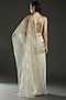 Featuring an ivory and gold pre-stitched saree in metallic polymer base with a winged palla. It is paired with a matching gold blouse having hand embroidery.
