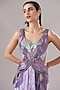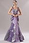 Featuring a lilac draped gown in metallic polymer base with hand embroidery.