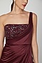 Featuring a maroon one shoulder gown in satin base with sequins embroidery. It has a high slit.