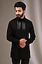 Featuring a black shirt in cotton satin base with corded structured yoke. Perfect attire for a festive occasion, exuding charm and elegance.