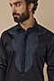 Featuring a black structured shirt in cotton satin base with handwoven polymer details. Ideal for casual wear and occasions that embrace a carefree spirit.