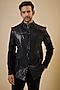 Featuring a black structured metallic bandhgala jacket in velvet, polyester and nylon base. It is paired with pants. Perfect wear for a wedding, sangeet or engagement ceremony, exuding charm and elegance.