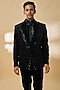 Featuring a black tuxedo jacket in velvet base. It is paired with trousers. Style it with shoes and watch for a reception, cocktail, sangeet or engagement ceremony.