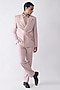 Featuring a blush tuxedo in satin crepe base. It is paired with a shirt and pants. Style it with a pair of shoes for a reception, cocktail, sangeet or engagement ceremony.