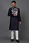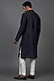 Featuring a dark blue kurta in silk chanderi base with metallic polymer detailing. It is paired with contrasting tapered pants.
