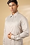 Featuring a grey shirt in cotton satin base. Style it up with pants for casual look, exuding charm and elegance.