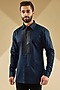 Featuring an ink blue structured shirt in cotton satin base with handwoven metallic polymer yoke detail. Style it up with pants and shoes for casual wear, exuding charm and elegance.